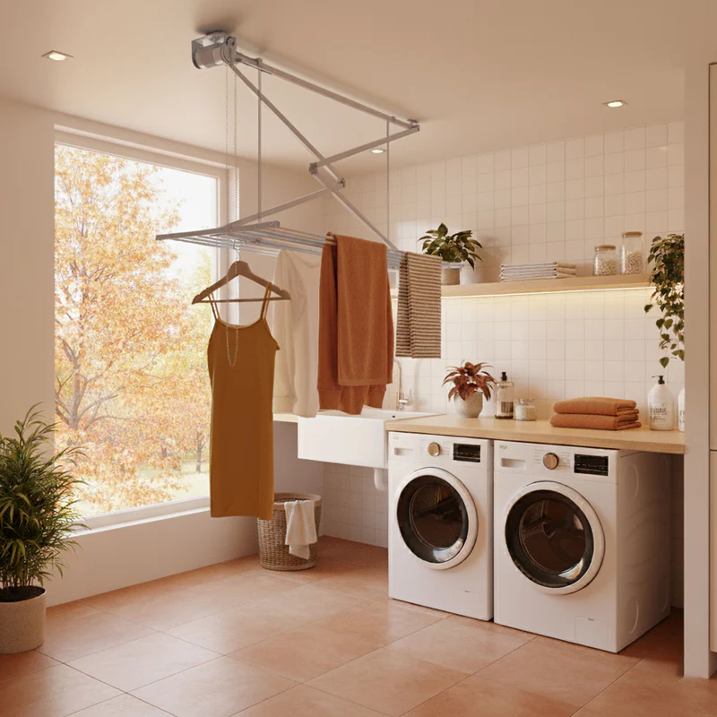 Acces Ergonomic: Coboara pana la 1.8 metri pentru a agata rufele confortabil.